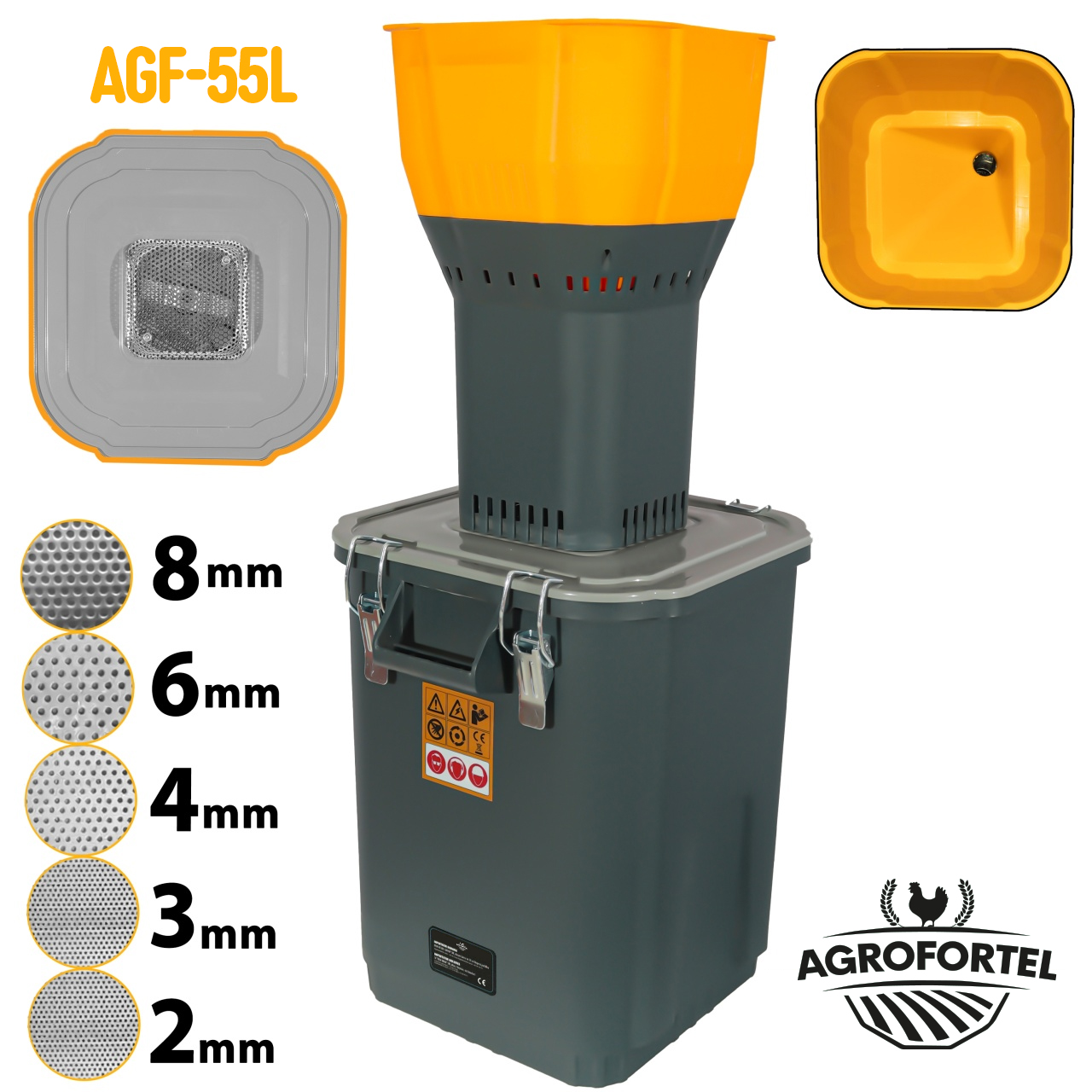 Elektrický šrotovník na obilí AGF-55 je navržen pro efektivní a rychlé zpracování obilí, což ocení nejen domácnosti, ale také menší farmy, jež potřebují kvalitní a spolehlivé zařízení. S výkonem 1500 W a rychlostí 19 000 otáček za minutu zvládne zpracovat širokou škálu obilovin během krátké doby. S nádobou o kapacitě 55 litrů a zásobníkem na 13,4 litru obilnin je ideálním pomocníkem pro zpracování surovin. Skvěle se hodí například pro pohodlné mletí pšenice, kukuřice, ovsa, žita, ječmene, a prosa. Příprava krmiva pro zvířata nebyla na farmě nikdy jednoduší.