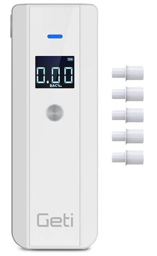 Moderní, digitální tester alkoholu GETI GAT02 je určen k osobnímu použití a je vybaven nejmodernějším typem polovodičového senzoru. Přístroj je určen pro orientační měření hladiny alkoholu v krvi, a přestože není vybaven elektrochemickým čidlem, dosahuje velmi přesných výsledků. Měření testeru se pohybuje v rozmezí 0,00 – 2,00‰ BAC s přesností ± 0,08‰ BAC. Použití přístroje je velmi jednoduché, stačí tester pouze zapnout a po ukončení odpočtu foukat do náustku. Naměřená hladina alkoholu se následně zobrazí na přehledném a podsvíceném LCD displeji.