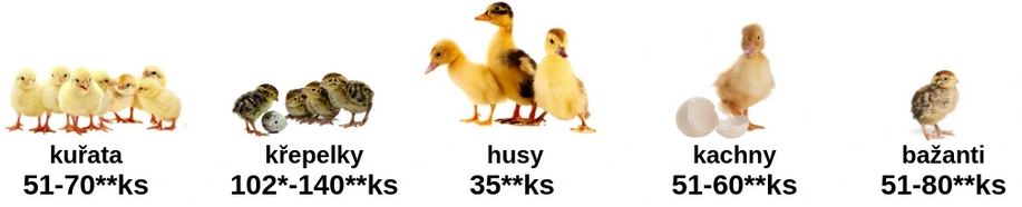 Kapacita líhně dle jednotlivých druhů drůbeže