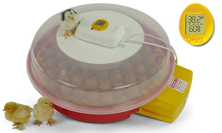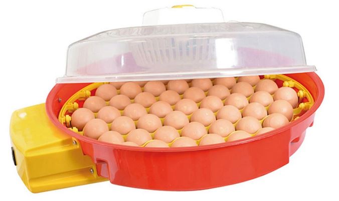 Líheň na drůbež, automatické otáčení, na 51 slepičích vajec, ukazatel teploty a vlhkosti, teplota nastavena, externí nádržka na vodu.