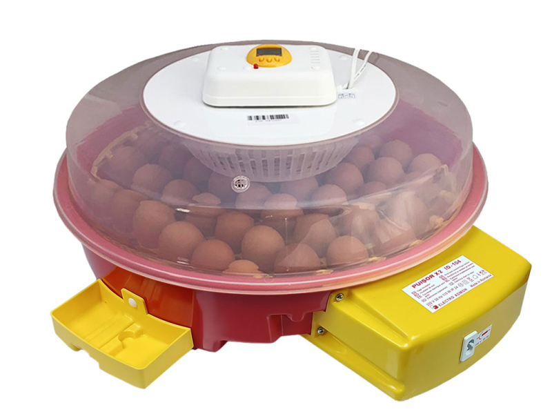 Líheň na drůbež, automatické otáčení, na 51 slepičích vajec, ukazatel teploty a vlhkosti, teplota nastavena, externí nádržka na vodu.