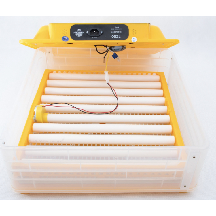 Líheň obsahuje rolovací držáky vajec - jsou určené jak pro slepičí vejce, tak i pro husí, kachní nebo křepelčí. Na rozdíl od klasické líhně se vejce kutálejí.