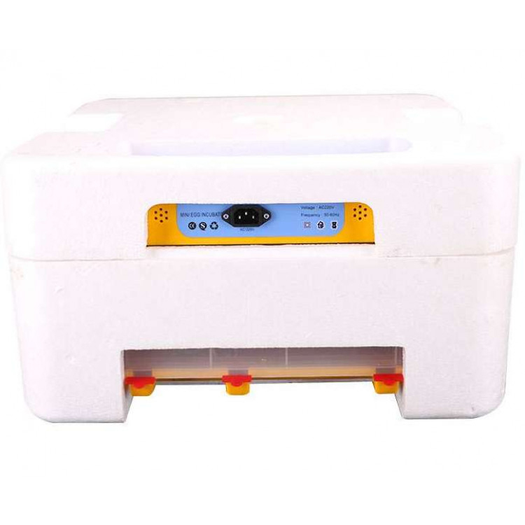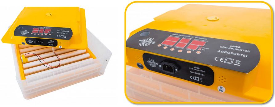 - Funkce: automatické otáčení, automatické řízení vlhkosti, alarm pro odchylky teploty a vlhkosti, počítání dní, integrované prosvětlování vajec.