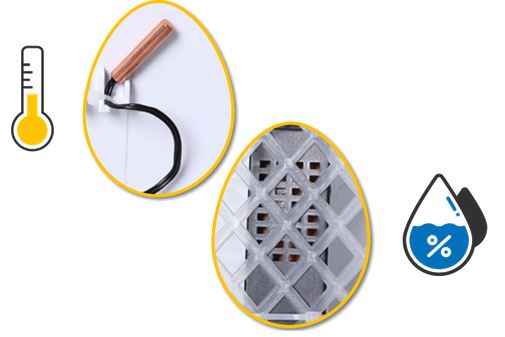 Plně automatický provoz včetně regulace vlhkosti pro optimální líhnutí.