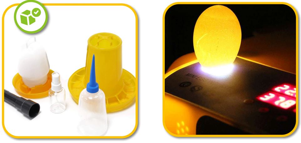 K líhni obdržíte zdarma ZÁKLADNÍ SADU PRO LÍHNUTÍ. Základní sada obsahuje krmítko, napáječku, lahvičku, postřikovač a ruční prosvětlovačku.