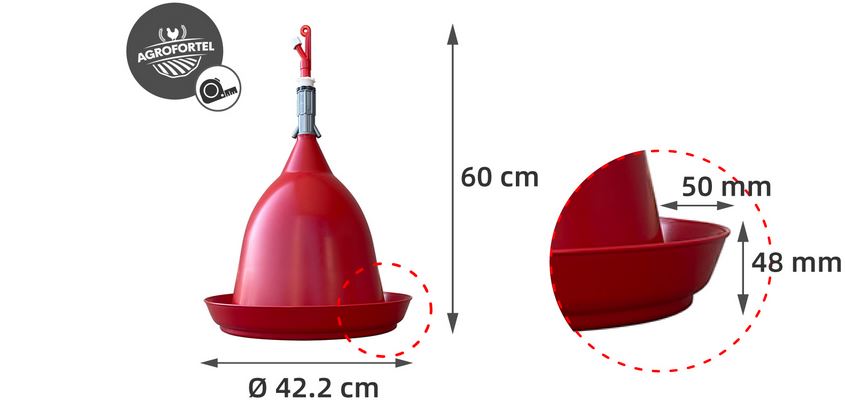 Tato automatická zvonová napáječka je ideálním řešením pro 60 až 80 slepic (nebo jiných dospělých chovných ptáků). Díky automatickému ventilu si sama reguluje hladinu vody a zajistí nepřetržitý přísun čerstvé vody pro vaše slepičky, bez nutnosti neustálé kontroly.