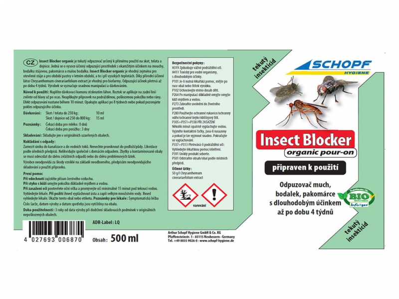 BIO roztok k odpuzování much SCHOPF INSECT BLOCKER ORGANIC POUR-ON