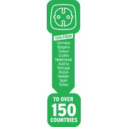 Cestovní adaptér se 7 zástrčkovými nástavci lze použít ve více než 150 zemích světa. Spolehlivý, univerzální napájecí adaptér sloužící k připojení elektrických zařízení s německým systémem zástrček do zahraničních zásuvek s jinými systémy.