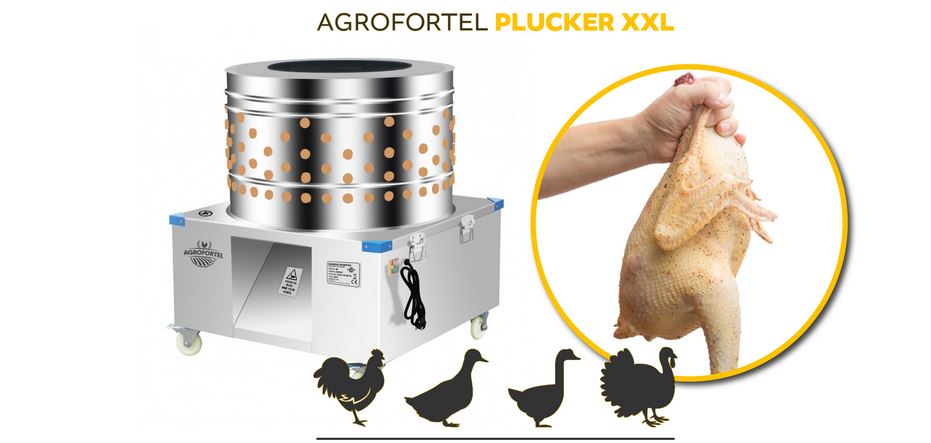 Představujeme Vám BESTSELLER společnosti AGROFORTEL, elektrickou bubnovou škubačku na drůbež do 32 kg - kuřata, kachny, husy, husokachny a krůty. Zaručuje profesionální a bezstarostné škubání drůbeže v domácím i farmářském prostředí. Díky výkonnému motoru, oplachovému systému a robustní nerezové konstrukci je škubání rychlé, důkladné a maximálně hygienické. Samotné škubání zajišťují vyměnitelné gumové škubací prsty ve spolupráci s motorem o výkonu 2200 W. Tato škubačka je Vaším ideálním pomocníkem, když potřebujete škubat slepice, husy, kachny i krůty! Zvládne vytrhat peří z až 32 kg drůbeže během pouhých 15 sekund – a to vše bez potrhání kůže! Škubačka je vhodná pro domácí použití.