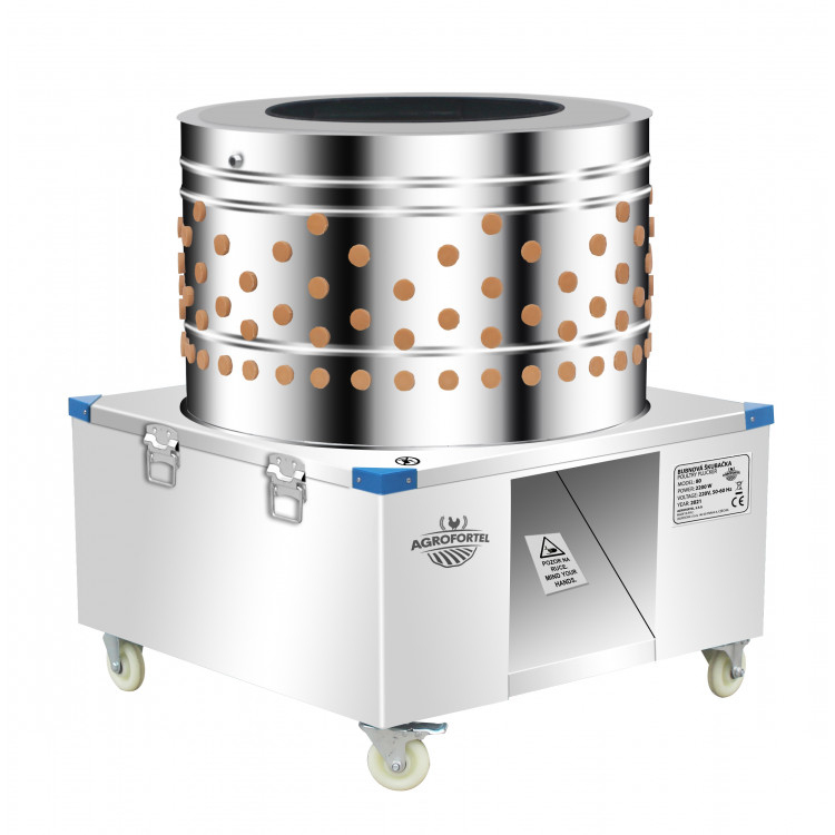 Představujeme Vám BESTSELLER společnosti AGROFORTEL, elektrickou bubnovou škubačku na drůbež do 32 kg - kuřata, kachny, husy, husokachny a krůty. Zaručuje profesionální a bezstarostné škubání drůbeže v domácím i farmářském prostředí. Díky výkonnému motoru, oplachovému systému a robustní nerezové konstrukci je škubání rychlé, důkladné a maximálně hygienické. Samotné škubání zajišťují vyměnitelné gumové škubací prsty ve spolupráci s motorem o výkonu 2200 W. Tato škubačka je Vaším ideálním pomocníkem, když potřebujete škubat slepice, husy, kachny i krůty! Zvládne vytrhat peří z až 32 kg drůbeže během pouhých 15 sekund – a to vše bez potrhání kůže! Škubačka je vhodná pro domácí použití.