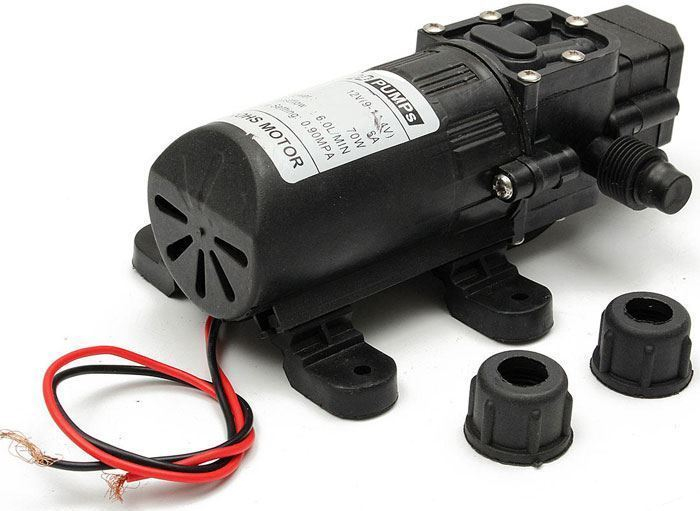 Samonasávací membránové čerpadlo s tlakovým spínačem pro automatické vypínání čerpadla. Primárně určeno pro rozvod vody v karavanech.