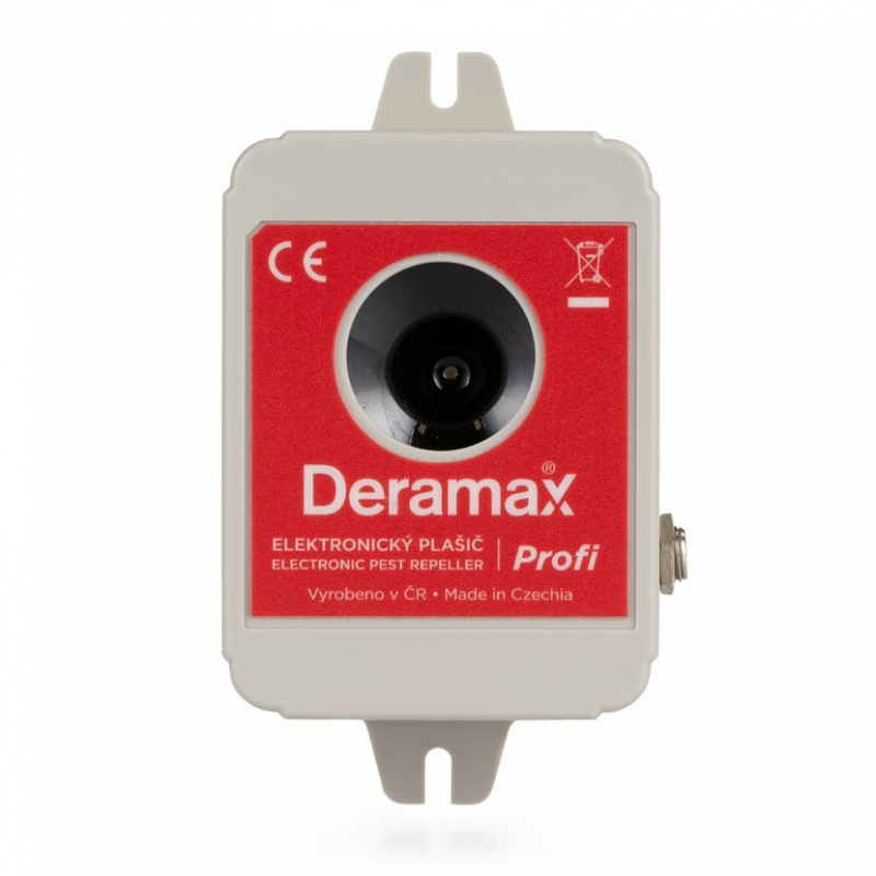 Ultrazvukový plašič (odpuzovač) Deramax-Profi je elektronické zařízení, které slouží k ochraně vnitřních nebo venkovních prostor před kunami, hlodavci a rejsky. Přístroj je zcela bezpečný a bezhlučný jak pro člověka, tak i pro běžná domácí a hospodářská zvířata a umožňuje tak bezproblémové využití i v obytných prostorách. Škůdci jsou trvale obtěžováni ultrazvukovými signály plašiče a v krátkém čase opouští chráněný prostor. Nedochází tedy k úhynu škůdců a nevzniká nutnost odstraňovat uhynulá zvířata. Provoz přístroje je zcela ekologický, bez využití chemických prostředků.