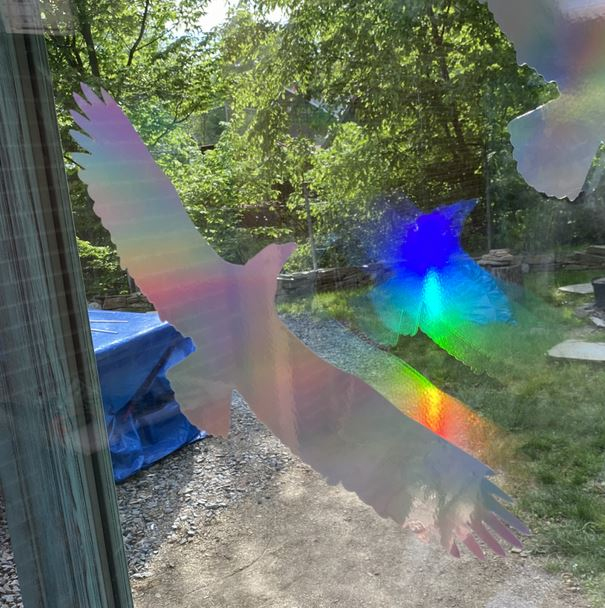 Holografická fólie tyto odlesky vytváří již malou změnou úhlu pozorovatele. Pták při letu mění úhel pozorování statického objektu prakticky každou milisekundu. Samolepka Rainbow fantasy, tak vytváří kontinuální barevné odlesky duhových barev v různých, i pro člověka neviditelných barvách spektra.