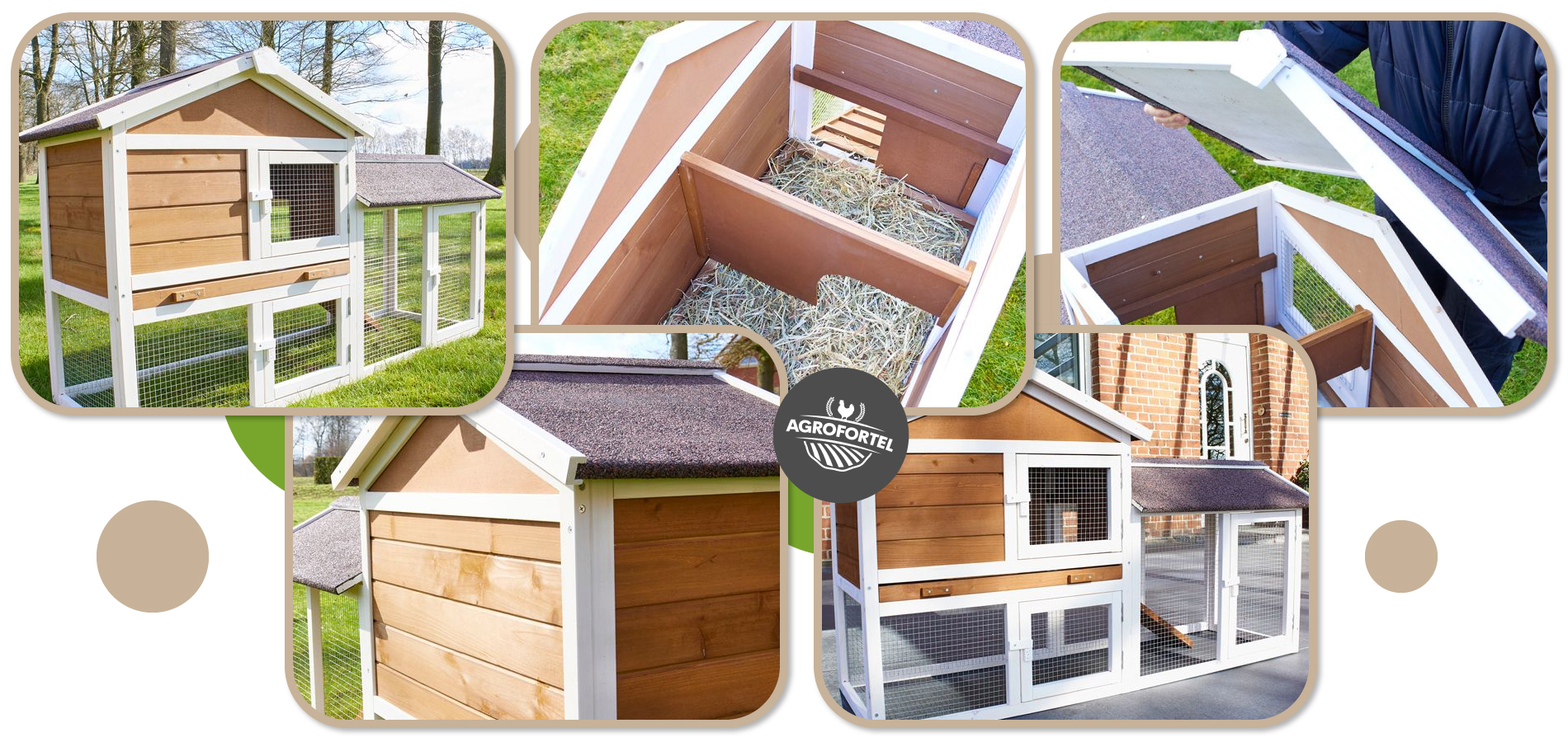 - Kvalitní materiály - králíkárna je vyrobena z masivního dřeva ošetřeného ochranným nátěrem. Bezpečí před deštěm zajišťuje střecha z bitumenovcýh desek.