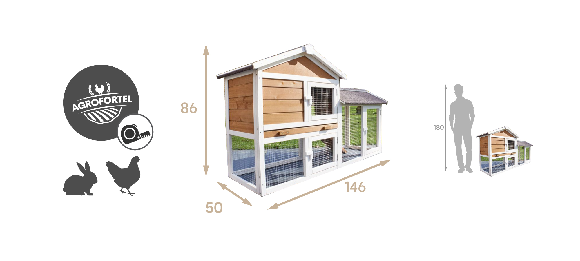 Vnější rozměry celé králíkárny i s výběhem jsou 1460x500x860mm.