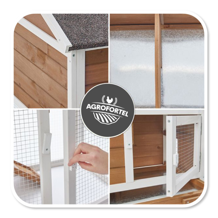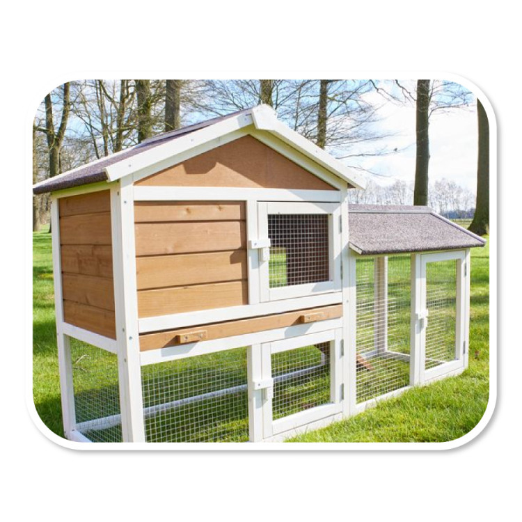- Kvalitní materiály - králíkárna je vyrobena z masivního dřeva ošetřeného ochranným nátěrem. Bezpečí před deštěm zajišťuje střecha z bitumenovcýh desek.