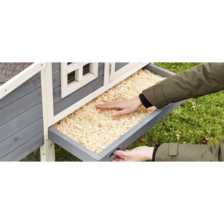 Kurník je vybaven zásuvkou pro snadné vyprazdňování trusu.