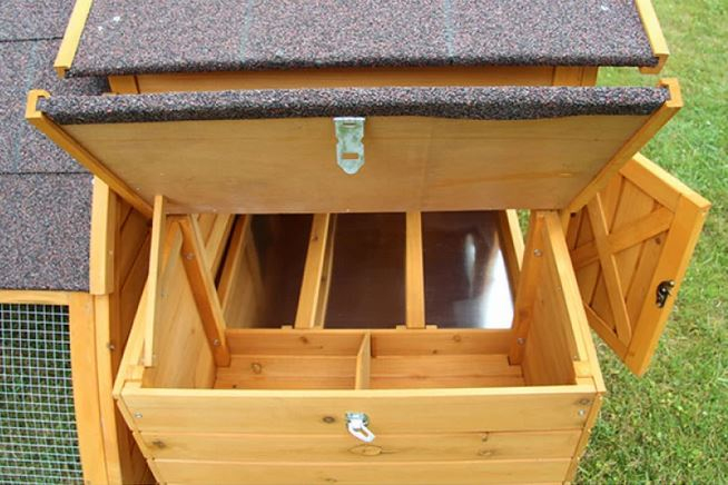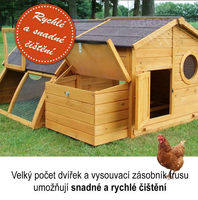 Kurník je vybaven zásuvkou pro snadné vyprazdňování trusu.