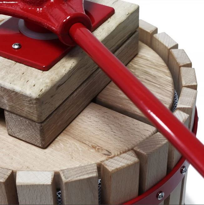 Tento dřevěný lis na ovoce je vyroben z kvalitní kovové konstrukce a velmi tvrdého bukového dřeva.