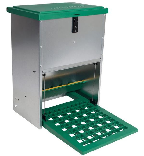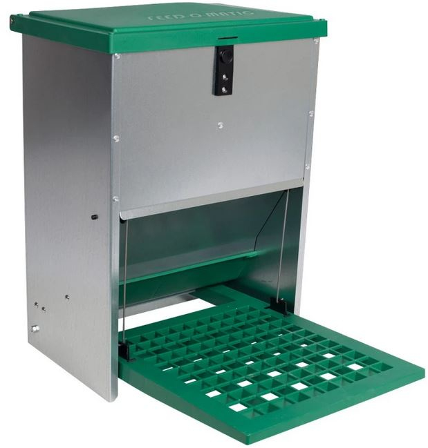 Při použití Feedomatic je potrava přístupná pouze tehdy, když kuřata stojí na stupátku. Myši, krysy a ptáci se nedostanou na potravu a proto nemohou kontaminovat zrní. Feedomatic chrání drůbež před nebezpečnými chorobami. Nášlapné krmítko je stabilní, snadno se čistí a je odolné proti stříkající vodě. Je k dispozici v 5, 8, 12 nebo 20 kg variantě, takže pro každou potřebu existuje vhodné řešení.