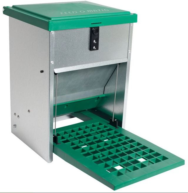 Při použití Feedomatic je potrava přístupná pouze tehdy, když kuřata stojí na stupátku. Myši, krysy a ptáci se nedostanou na potravu a proto nemohou kontaminovat zrní. Feedomatic chrání drůbež před nebezpečnými chorobami. Nášlapné krmítko je stabilní, snadno se čistí a je odolné proti stříkající vodě. Je k dispozici v 5, 8, 12 nebo 20 kg variantě, takže pro každou potřebu existuje vhodné řešení.
