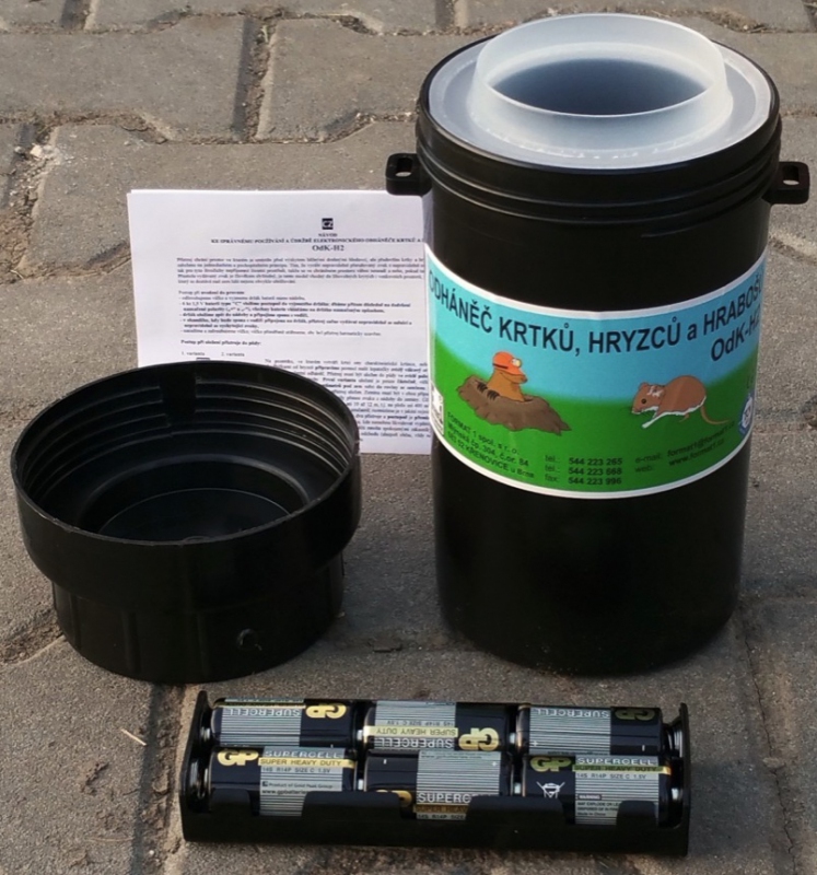 Akustický elektronický odháněč krtků, hryzců a hrabošů. Jedná se o ryze český produkt s dlouholetou tradicí na trhu (od r. 1991) vyráběný přímo u nás ve firmě FORMAT1 spol. s r. o. Verze OdKH2 je druhým, vylepšeným modelem oblíbené řady OdKH. Velmi spolehlivý, výkonný, za dobu více jak 29 let ověřený mnoha zákazníky. Neškodný jak pro člověka a domácí hospodářská zvířata. Přístroj vytváří pro škůdce nepříjemné zvukové prostředí, škudci postupně opustí chráněný prostor. Přístroj je tedy naprosto humánní, nezabíjí zvířata, neškodí jim, pouze jim znepříjemní pobyt v chráněném prostoru, tedy odhání. Nevyužívá žádných chemických přísad vkládáných do půdy. Je vodotěsný, baterie se nachází rovněž v tomto vodotěsném prostoru, tedy i v případě jejich poškození (vytečení) není nijak znečištěna okolní půda.