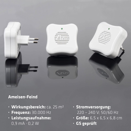 Odpuzovač do zástrčky naproti tomu pomocí hluku účinně a trvale odhání mravence z domu! Boj proti němu probíhá zcela přirozeným způsobem a nikdo není poškozen.