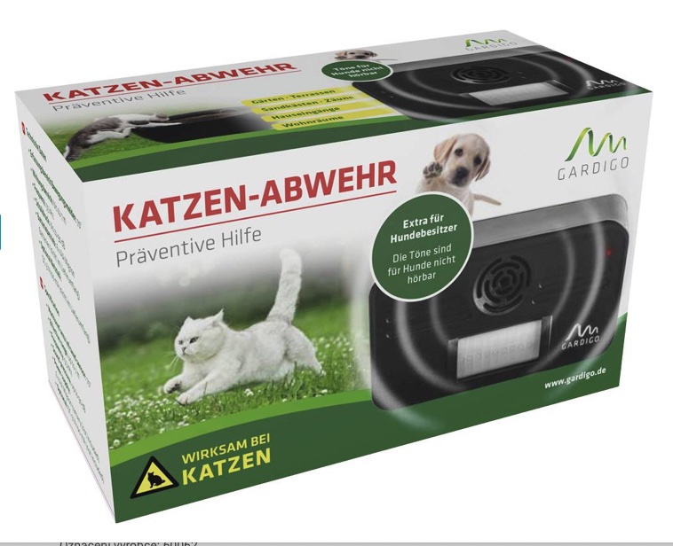 Ultrazvuk 55 kHz je neslyšitelný pro člověka a psy, pomáhá nechat vaši zahradu nebo terasu mimo pozornost koček. Tóny v této frekvenční oblasti jsou vnímány jako velmi rušivé a tím vzniká odpudivý efekt. V důsledku toho se kočky vyhýbají místům a hledají si jiná prostředí. Tento odpuzovač koček je určen speciálně pro majitele psů, protože zvuk 55 kHz není pro psy slyšitelný. Tímto způsobem odpuzuje pouze kočky a na psech se vůbec neprojeví.