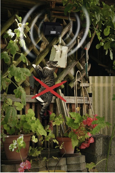 Pomocí infračerveného detektoru pohybu se registruje, zda se kočka nachází v blízkosti a ultrazvukový tón se aktivuje. Vydávaný zvuk je neškodný pro lidi i zvířata a je tak ideální kočičí odpuzovač v zahradě, vchodu do domu a obývacím pokoji.