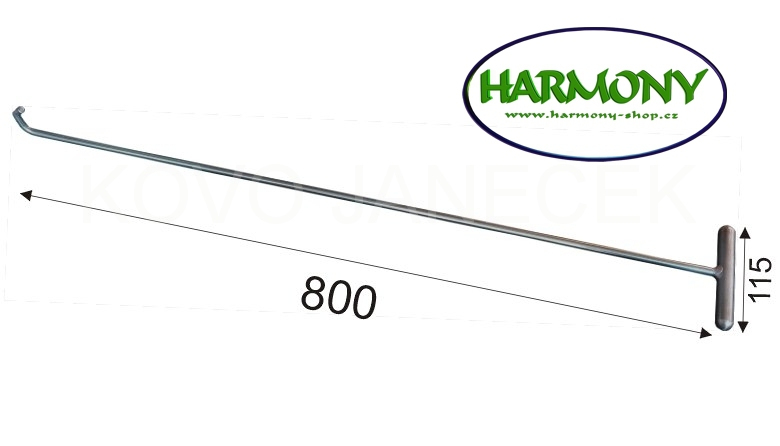 • Tyčka je vyrobena z kruhové ocele o průměru 8 mm, dlouhá 800 mm, ručka je z trubky 20 mm.