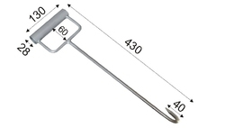 Lze použít i v jiných oborech, např. v zahradnictví k manipulaci s kořenovými baly. Vyrobeno z kruhové nerezové ocele o průměru 8 mm, celková délka háku 430 mm, ručka vyrobena z nerezové trubky o průměru 28x1,5 mm. Špička dlouhá 40 mm.