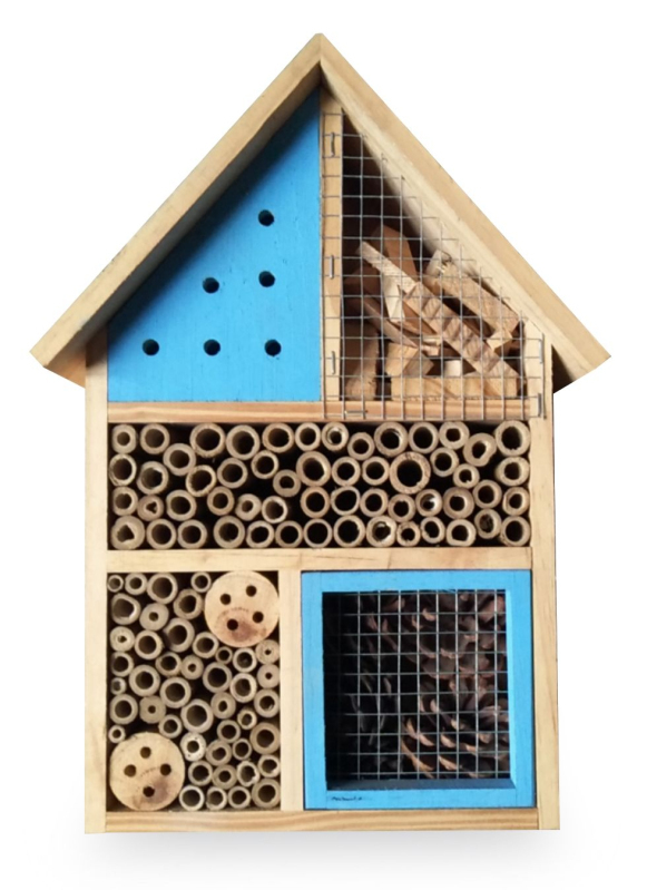 Uměle vytvořený domeček pro hmyz s rozměry 28 x 9 x 40 cm, s přírodním výplňovým materiálem (šišky, bambus, navrtaná polínka). Domečky pro hmyz jsou velmi oblíbené u kutilů, zahrádkářů a zejména u dětí, kteří se budou těšit na nové návštěvníky. Hmyzí hotel představuje ideální místo, kde se hmyz může v klidu rozmnožovat a hnízdit. Vyhledávají ho berušky, mravenci, včely, vosy a různé druhy brouků. Tento hmyz pomáhá opylovat květiny, stromy, keře a Vaše zahrada tak bude krásně rozkvetlá a prosperující. Hmyzí hotel je vyroben z kvalitního dřeva v atraktivním designu, který skvěle zapadne do všech exteriérů. Domeček pro hmyz bude nejen velmi dekorativní, ale navíc Vám umožní pozorovat chování hmyzu v jeho přirozeném prostředí.