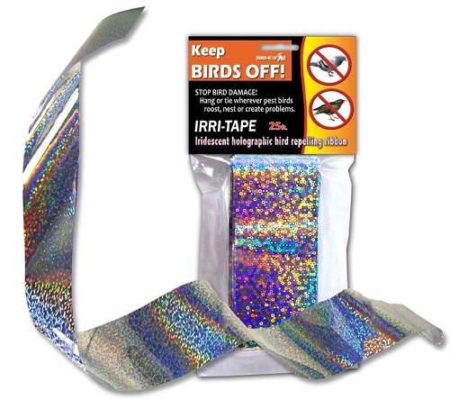 Holografická páska IRRI plaší ptáky z ošetřované oblasti multisenzoricky – bliká oslepujícím světlem, vydává hluk, když se houpe ve větru a vytváří fyzickou bariéru. Sluneční světlo se odráží od materiálu, dezorientuje a dráždí škůdce a když se páska chvěje ve větru, ozývá se ostré kovové klapání.