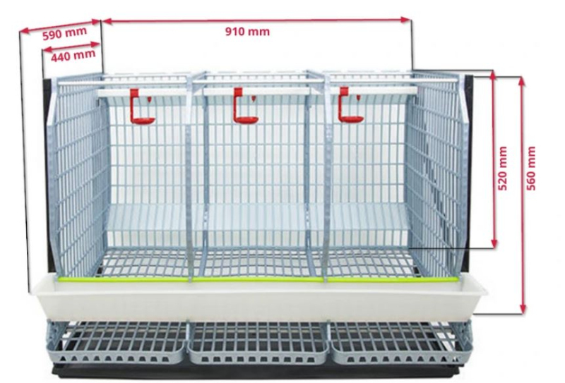 Rozměry jednotlivých oddílů klece jsou uvedeny na obrázku níže