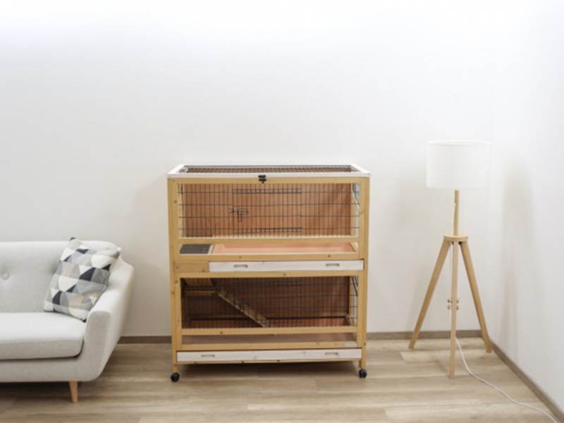 Pokud hledáte dostatečně prostornou klec pro své mazlíčky, která se bude perfektně vyjímat v každém interiéru, máte před sebou jasného favorita. Dřevěná klec poskytne hlodavcům příjemné bezpečné zázemí. Vaši mazlíčci se mohou mezi jednotlivými patry volně pohybovat, nebo můžete průchod uzavřít. Klec velmi snadno vyčistíte díky praktickým vyjímatelným trusníkům umístěným v každém patře. Pro lepší manipulaci je klec umístěna na čtyřech nohách s brzdou.