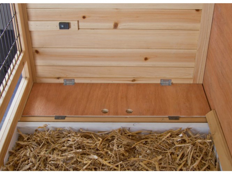 Čištění klece pro hlodavce zvládnete během pár minut. Práci velmi usnadní vyjímatelné plastové trusníky o výšce 6 cm, které stačí z klece vysout, vyčistit a vrátit zpět. Při údržbě klece jistě oceníte také výklopnou střechu s fixací.