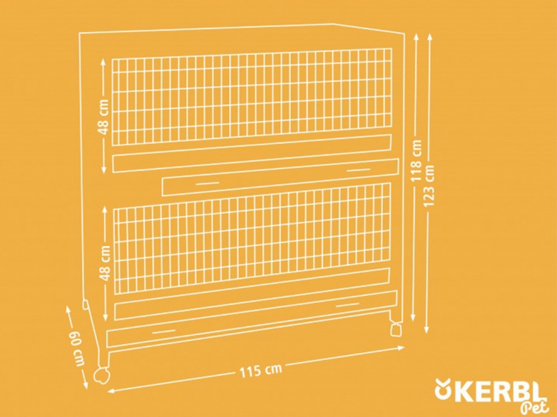 Vnější rozměry celé klece jsou 115 x 60 x 118 cm.