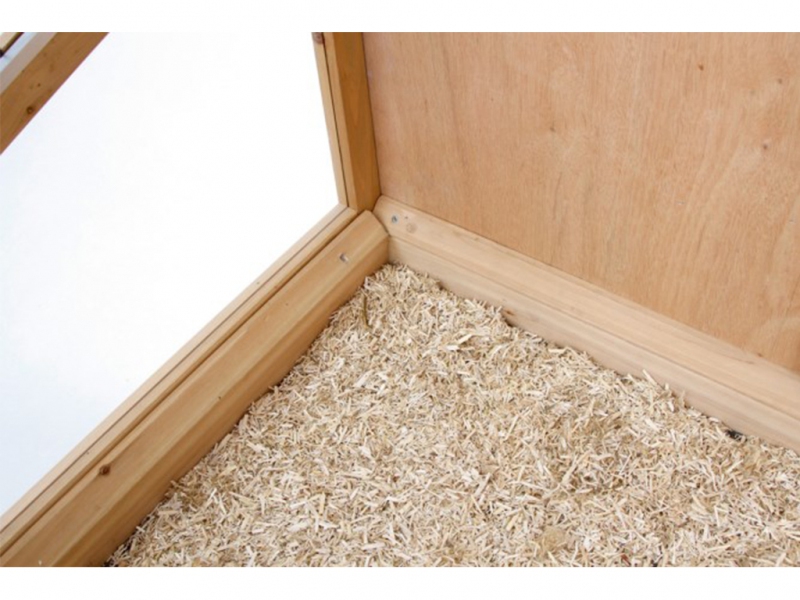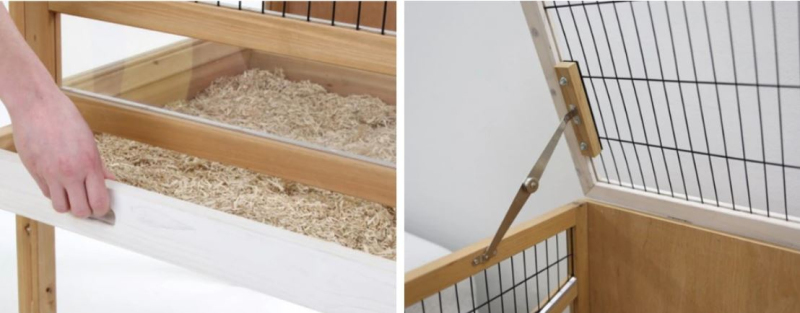 Čištění klece pro hlodavce zvládnete během pár minut. Práci velmi usnadní vyjímatelný plastový trusník o výšce 6 cm, který stačí z klece vysout, vyčistit a vrátit zpět. Při údržbě klece jistě oceníte také výklopnou střechu s fixací.