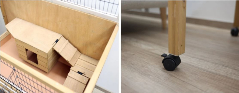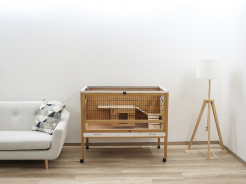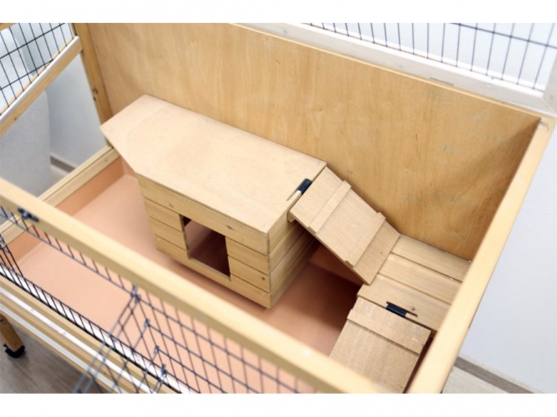 Jedná se o stylovou dřevěnou klec pro králíky, která se skvěle hodí do každého interiéru. Dřevěná klec poskytne hlodavcům příjemné bezpečné zázemí. Vaši mazlíčci budou moci odpočívat v dřevěném domku nebo na odpočívadle. Klec přitom velmisnadno vyčistíte díky praktickému vyjímatelnému trusníku. Pro lepší manipulaci a obsluhu je klec umístěna na čtyřech vysokých nohách s brzdou.