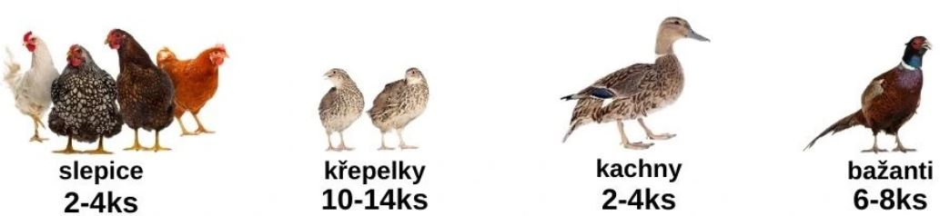 Ano, model podporuje různou drůbež – až 14 křepelek dle velikosti jedinců.
