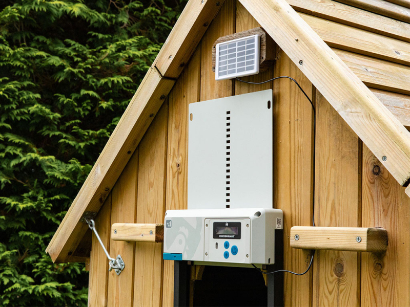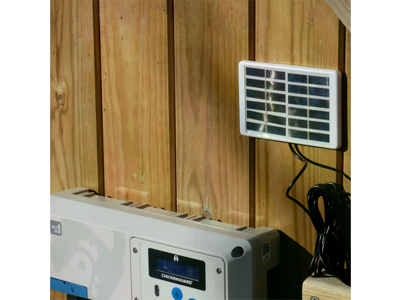 Chicken Guard ALL IN ONE SOLAR má extra výkonný motor, který dokáže zvednoutaž 2 kg. Součástí zařízení je také bezkontaktní snímač polohy dvířek. Přístroj je vybaven velice odolným pouzdrem, a tak zajišťuje perfektní ochranu při extrémních povětrnostních podmínkách až do teploty -20°C. Všechny potřebné informace o nastavení a stavu baterie jsou znázorněny na přehlednémLCD displeji.