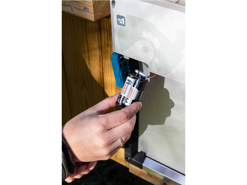 Chicken Guard ALL IN ONE má extra výkonný motor, který dokáže zvednoutaž 2 kg. Součástí zařízení je také bezkontaktní snímač polohy dvířek. Přístroj je vybaven velice odolným pouzdrem, a tak zajišťuje perfektníochranu při extrémních povětrnostních podmínkách až do teploty -20°C. Všechny potřebné informace o nastavení a stavu baterie jsou znázorněny na přehledném LCD displeji.
