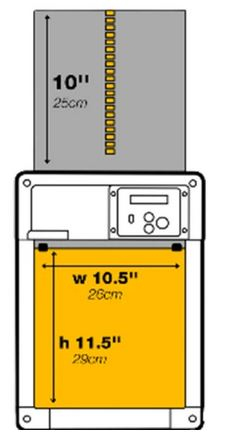 Rozměry celého systému zavírání včetně pojezdů jsou 31,5x70 cm. Rozměr samostatných dvířek je 26x29 cm.