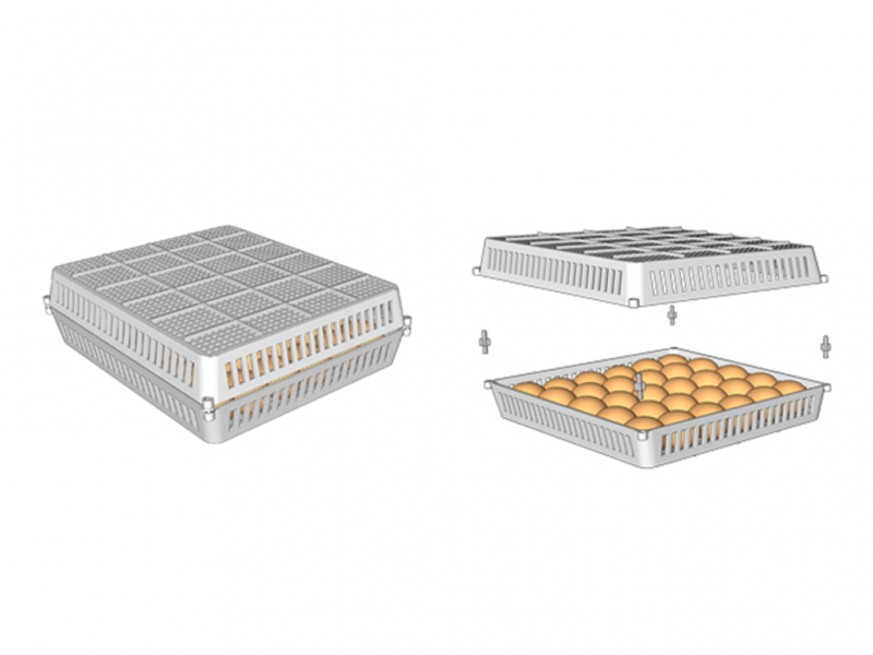 K umístění vajec před vylíhnutím ze skořápky, vhodný do líhní CIMUKA série CT, s kapacitou 30 ks slepičích vajec, z omyvatelného plastu. Snadná manipulace přes víko košíku, vysoká cirkulace vzduchu - prodyšná konstrukce.
