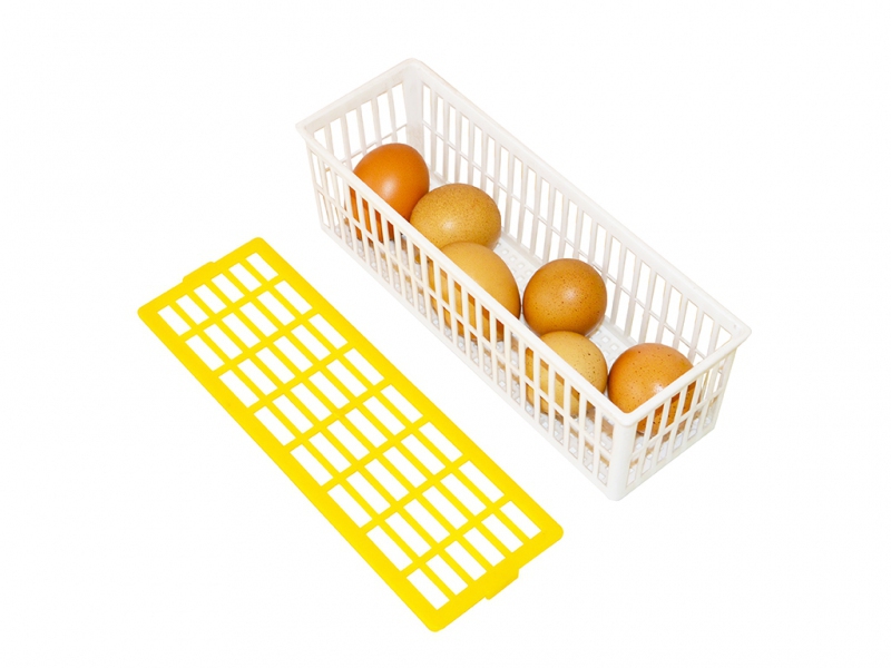K umístění vajec před vylíhnutím ze skořápky, vhodný do líhní CIMUKA série PD, s kapacitou 6 ks slepičích vajec, z omyvatelného plastu. Snadná manipulace přes víko košíku, vysoká cirkulace vzduchu - prodyšná konstrukce.