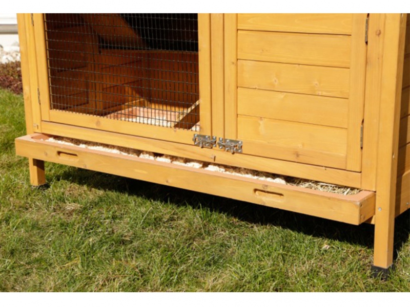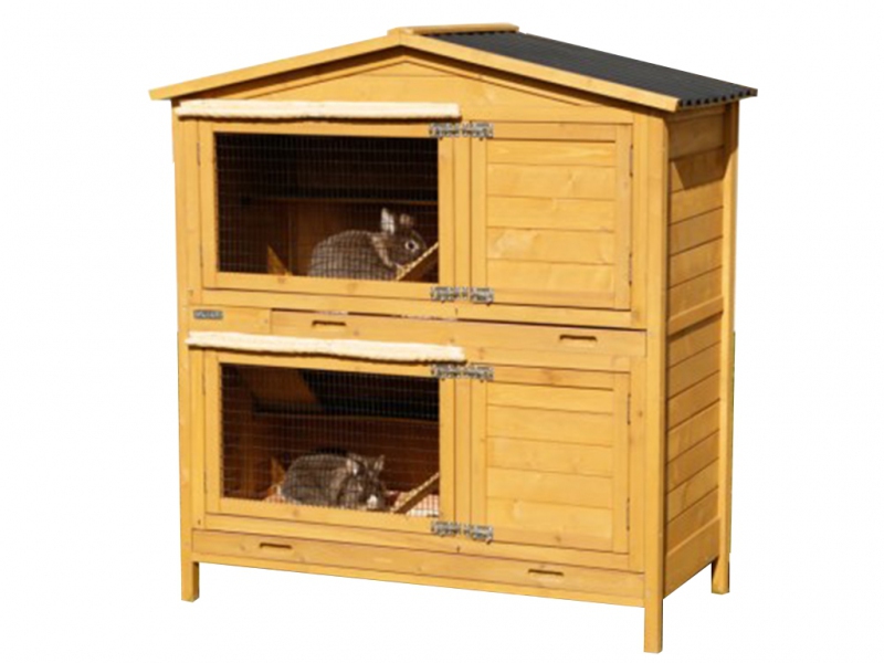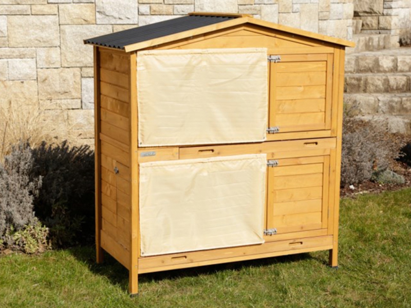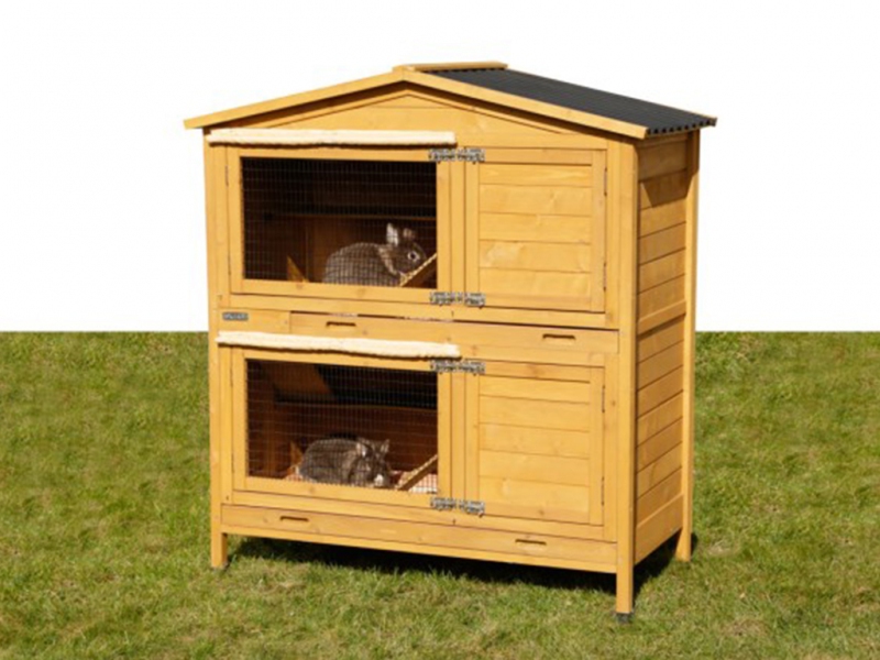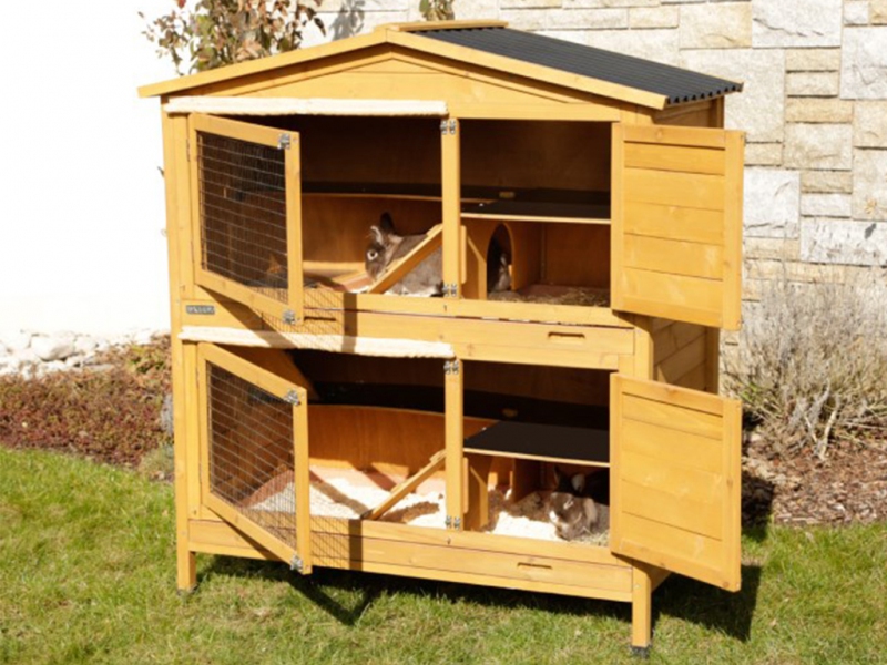 Jedná se o velice kvalitní dvoupatrovou králíkárnu, která Vašim mazlíčkům poskytne bezpečné zázemí. Králíkárnu velmi snadno vyčistíte díky praktickým vyjímatelným trusníkům umístěným v každém patře. Obě dvě patra králíkárny jsou volně průchozí, průchod je však možné uzavřít. Do králíkárny budete mít jednoduchý přístup přes čtvery samostatná dvířka, které jsou pro zvýšení bezpečnosti opatřeny druhým zámkem.