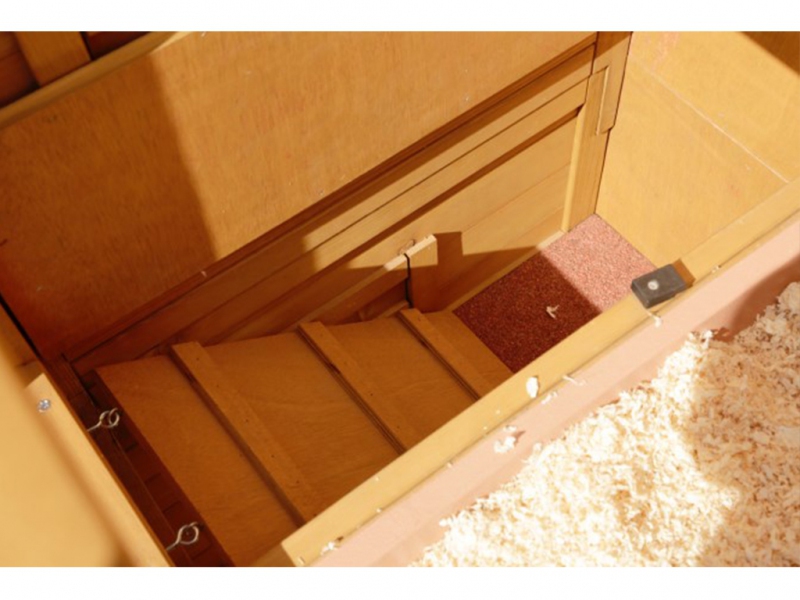 Králíkárna je navíc vybavena i bočními dvířky, kterými králíkovi můžete umožnit volný vstup do výběhu (výběh není součástí balení).