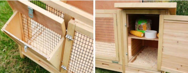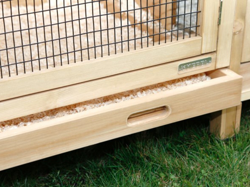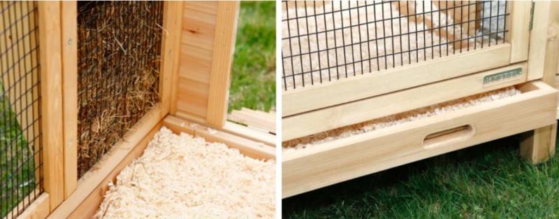 Čištění králíkárny zvládnete během pár minut. Práci velmi usnadní výsuvný plastový trusník, který stačí z králíkárny vysout, vyčistit a vrátit zpět. Při údržbě králíkárny jistě oceníte také odklápěcí střechu.