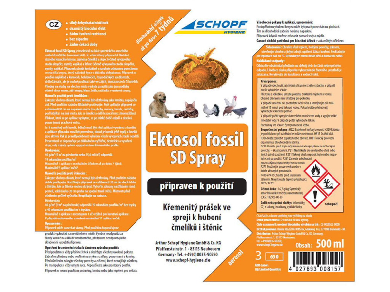 Křemenitý prášek ve spreji k hubení čmelíků i štěnic SCHOPF EKTOSOL FOSSIL SD SPRAY