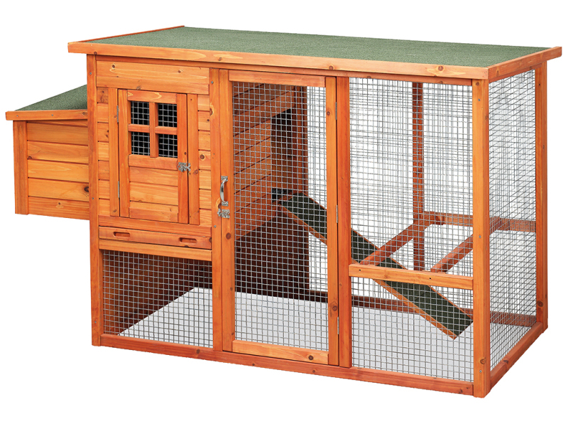 Kurník pro slepice, pro 3-5 nosnic, 2 vnější snášková hnízda, výsuvný trusník pro snadné čištění, rozměry: 1905x755x1040 mm.